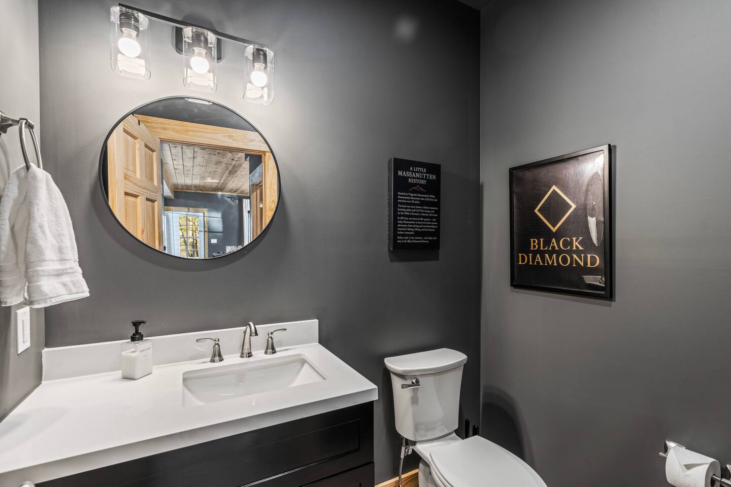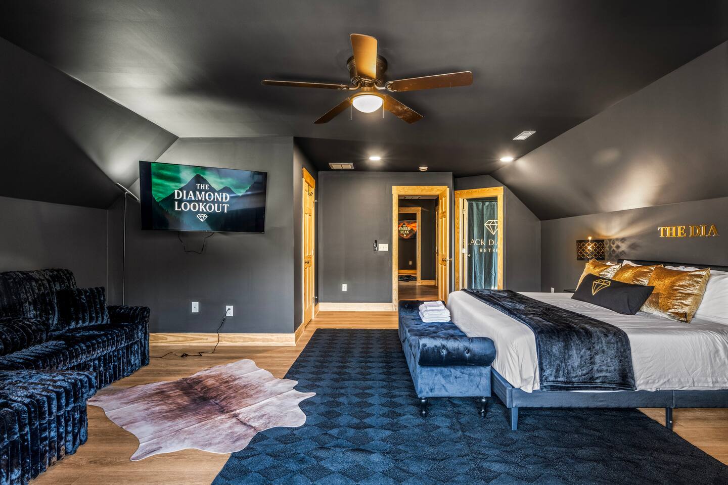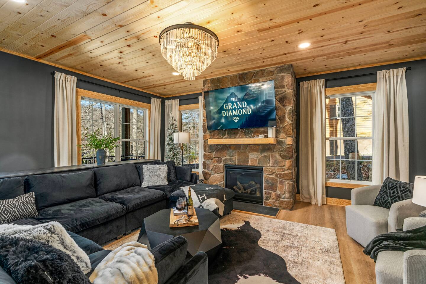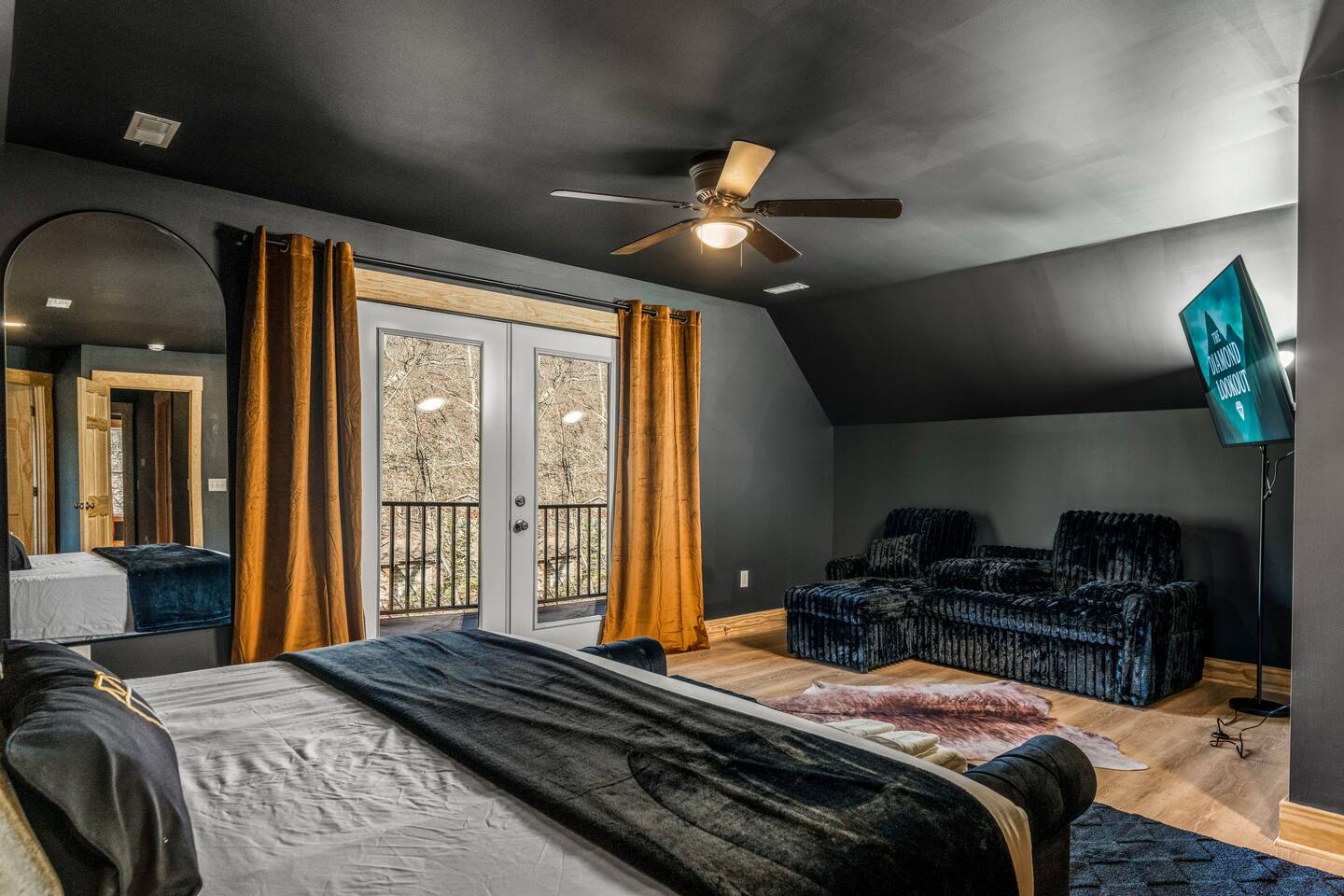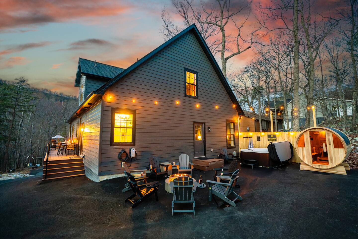 The Black Diamond Retreat is a moody-luxury mountain escape crafted for gatherings. With 7 spacious bedrooms, custom bunk spaces, and expansive living areas, it was designed with luxury in mind. Guests enjoy a hot tub, barrel sauna, arcade-style game room, EV charger, and family-friendly extras—all wrapped in bold mountain style. Just minutes from Massanutten’s slopes, waterpark, golf, and hiking, it’s the perfect place to relax, connect, and make memories