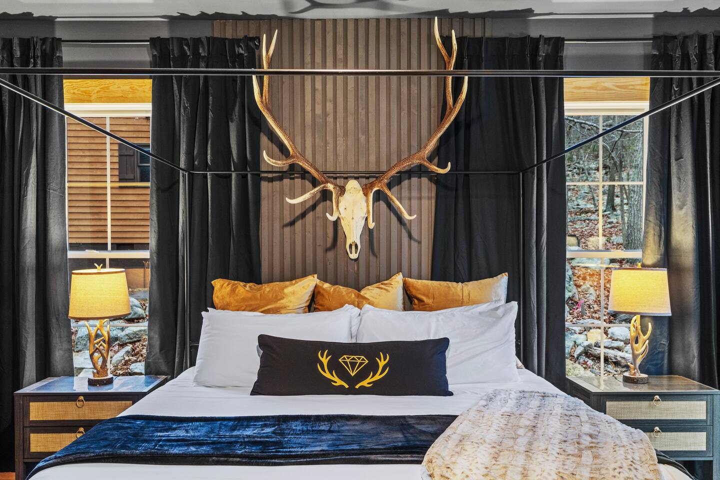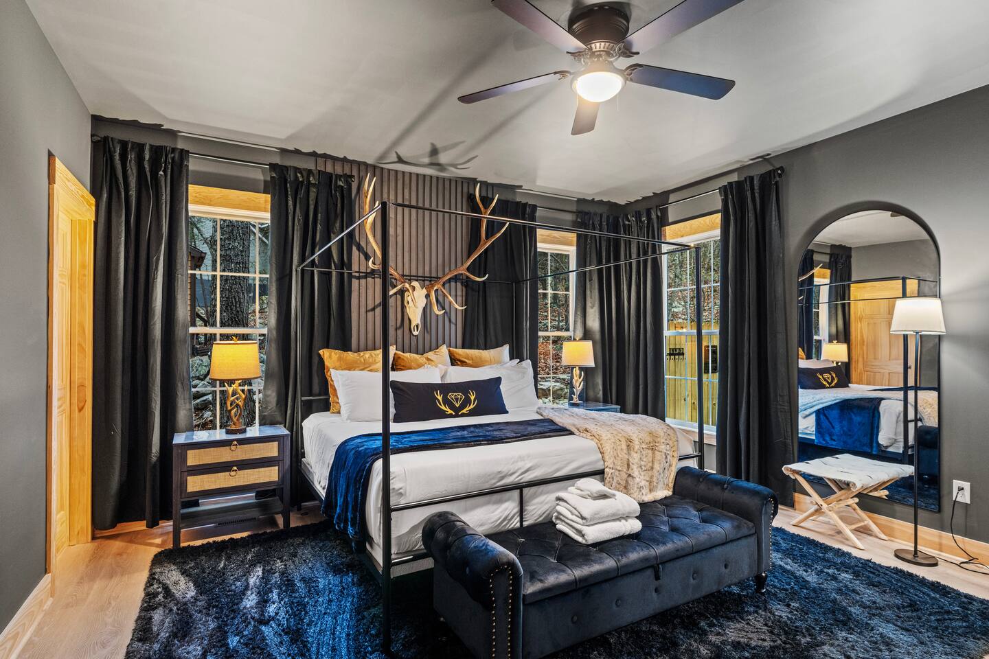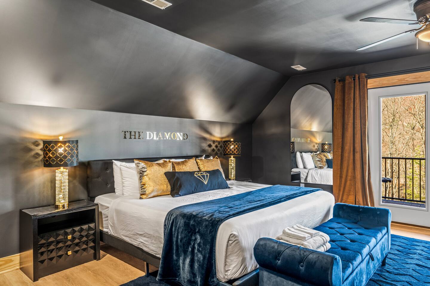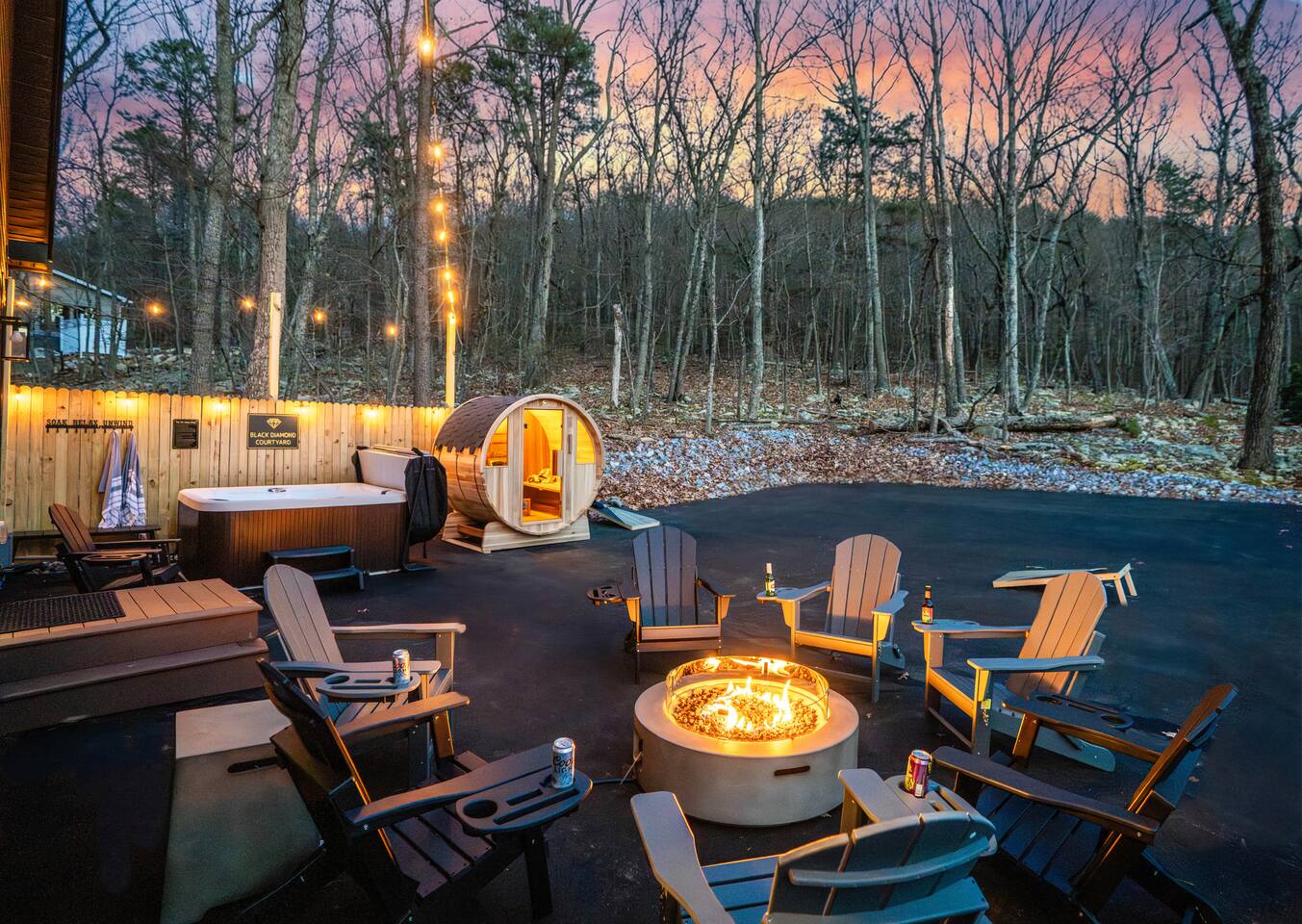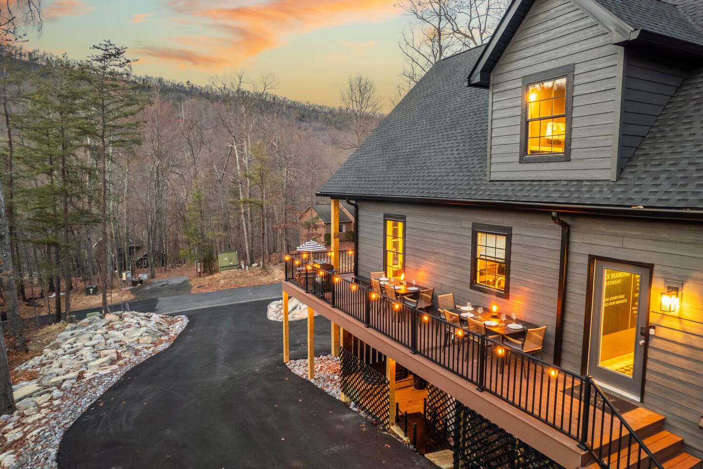The Black Diamond Retreat is a moody-luxury mountain escape crafted for gatherings. With 7 spacious bedrooms, custom bunk spaces, and expansive living areas, it was designed with luxury in mind. Guests enjoy a hot tub, barrel sauna, arcade-style game room, EV charger, and family-friendly extras—all wrapped in bold mountain style. Just minutes from Massanutten’s slopes, waterpark, golf, and hiking, it’s the perfect place to relax, connect, and make memories