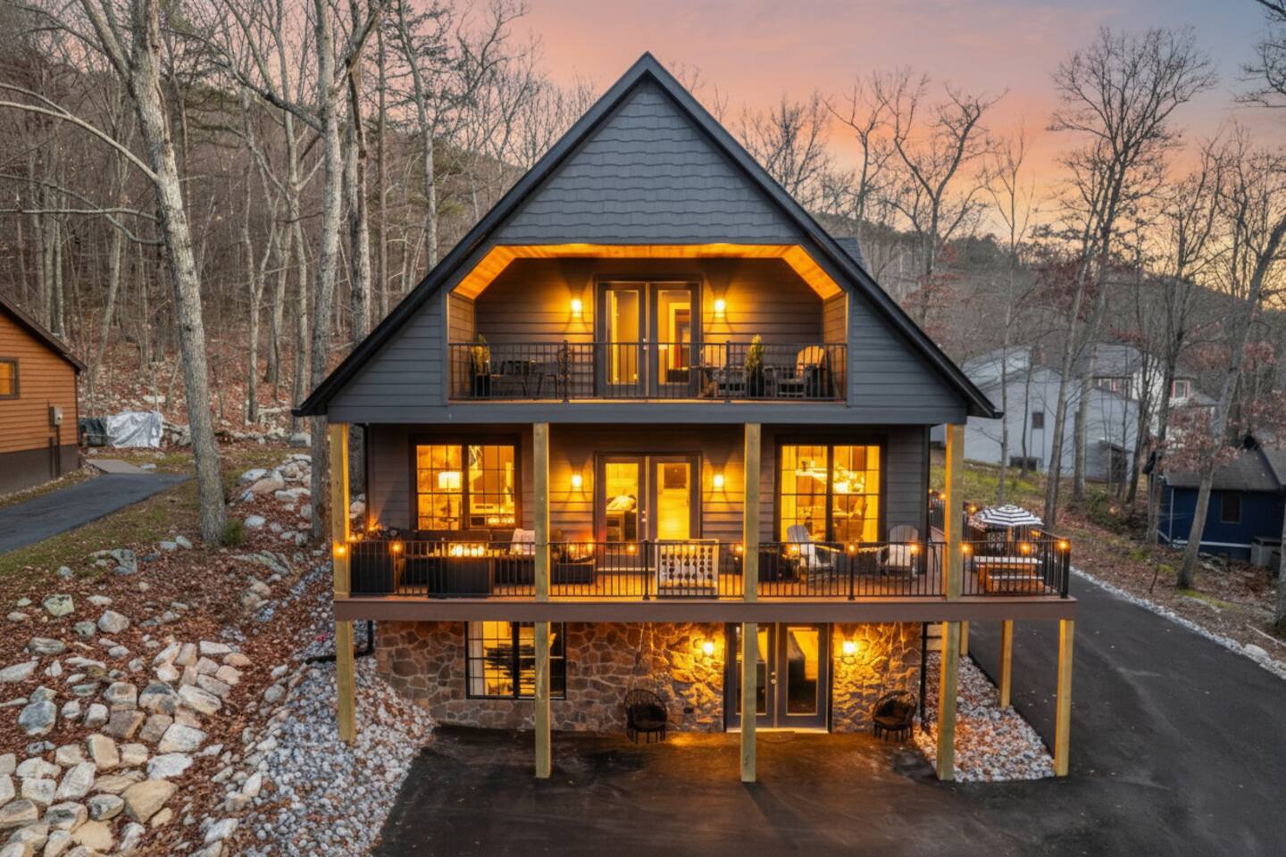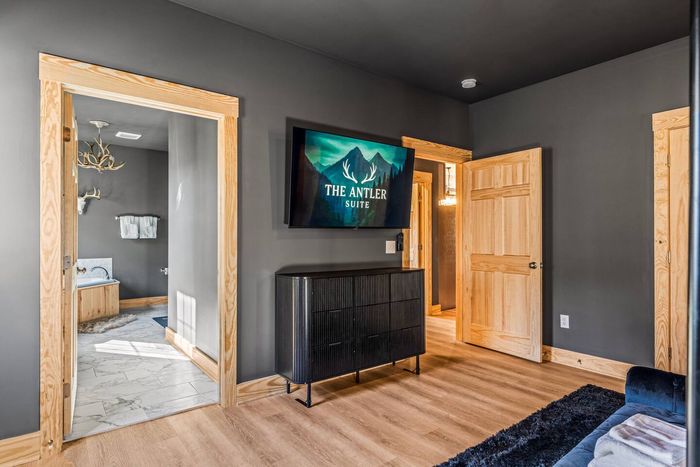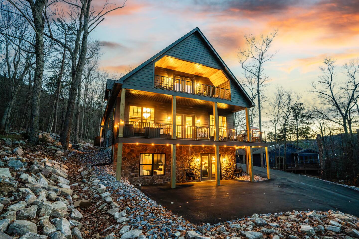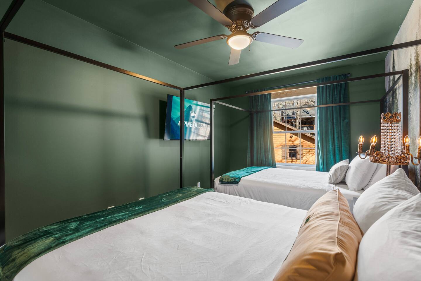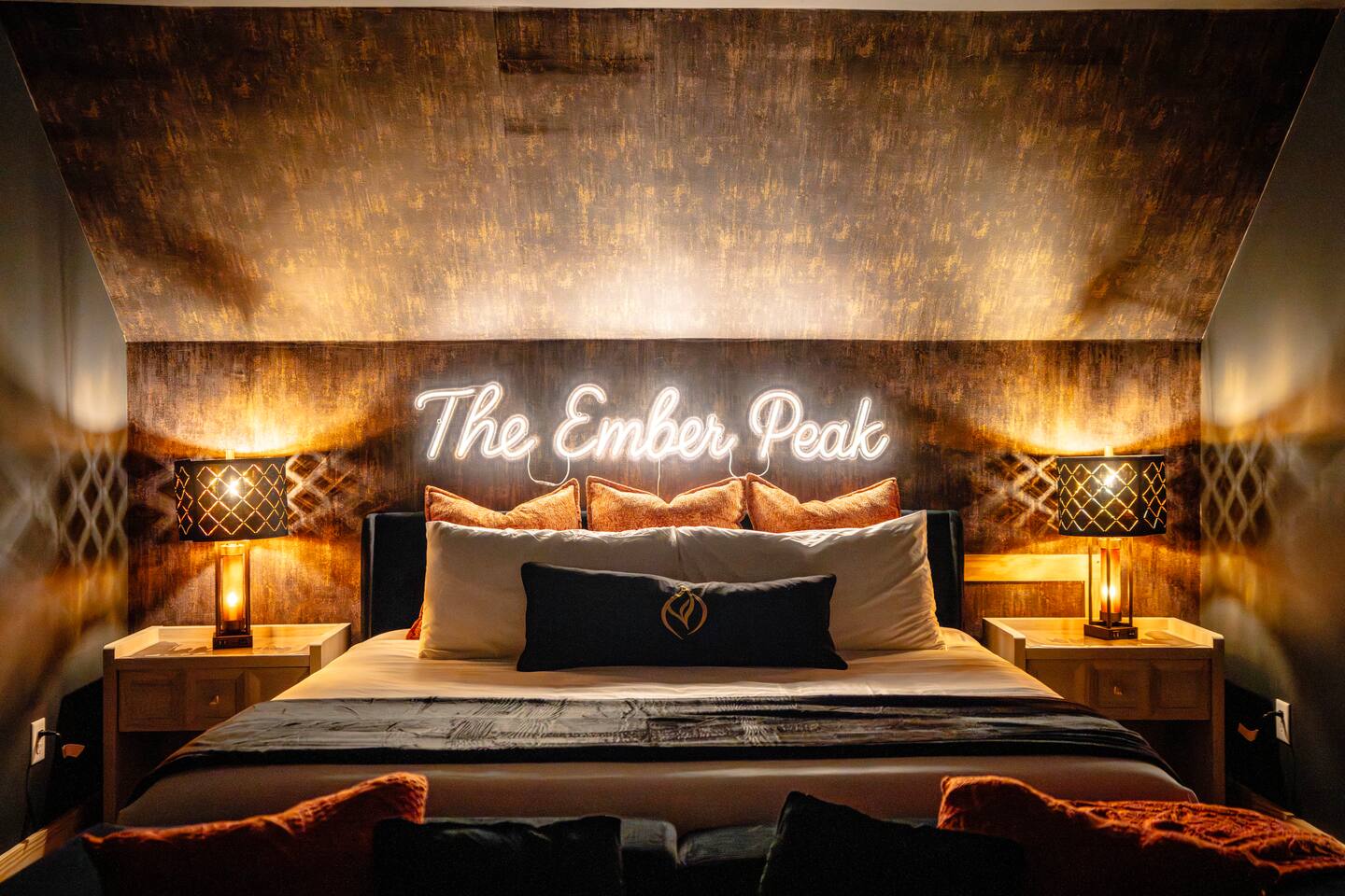 The Black Diamond Retreat is a moody-luxury mountain escape crafted for gatherings. With 7 spacious bedrooms, custom bunk spaces, and expansive living areas, it was designed with luxury in mind. Guests enjoy a hot tub, barrel sauna, arcade-style game room, EV charger, and family-friendly extras—all wrapped in bold mountain style. Just minutes from Massanutten’s slopes, waterpark, golf, and hiking, it’s the perfect place to relax, connect, and make memories