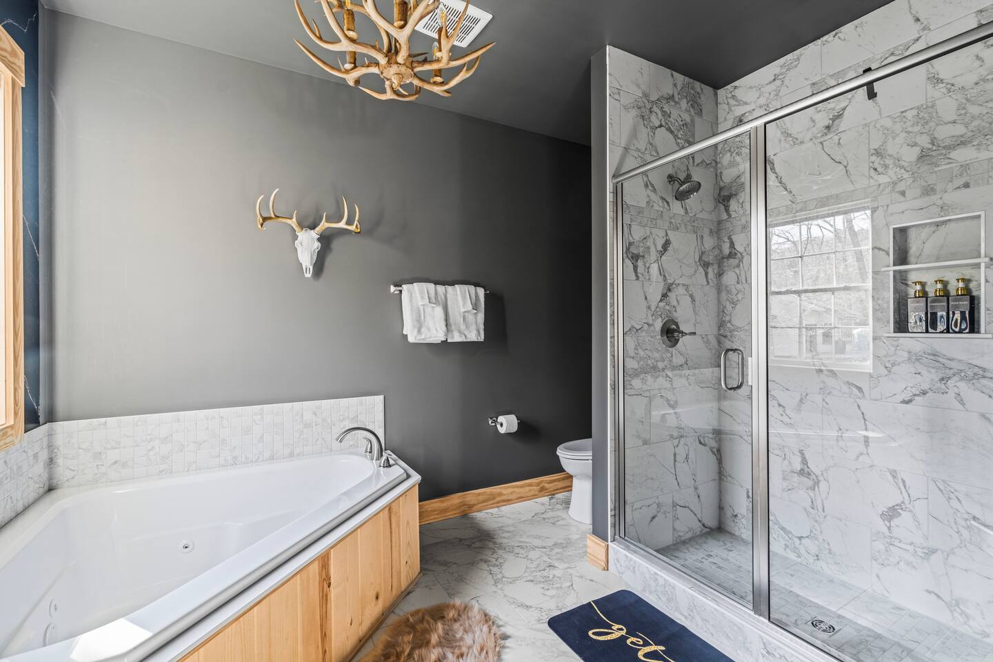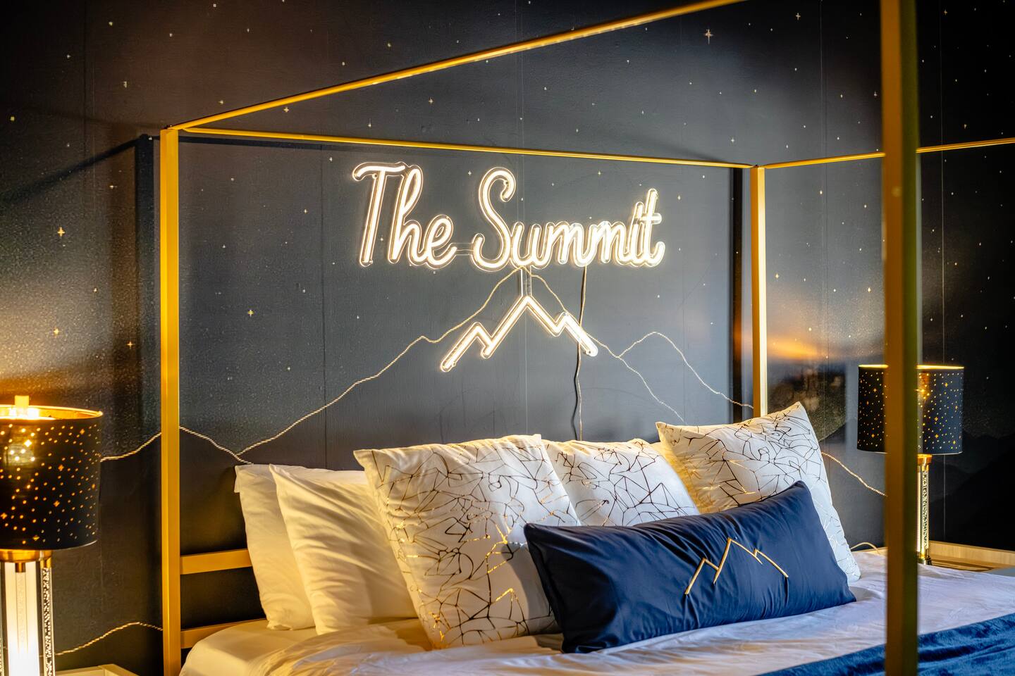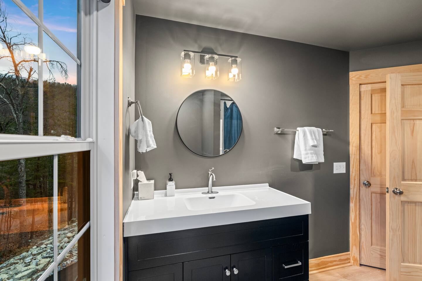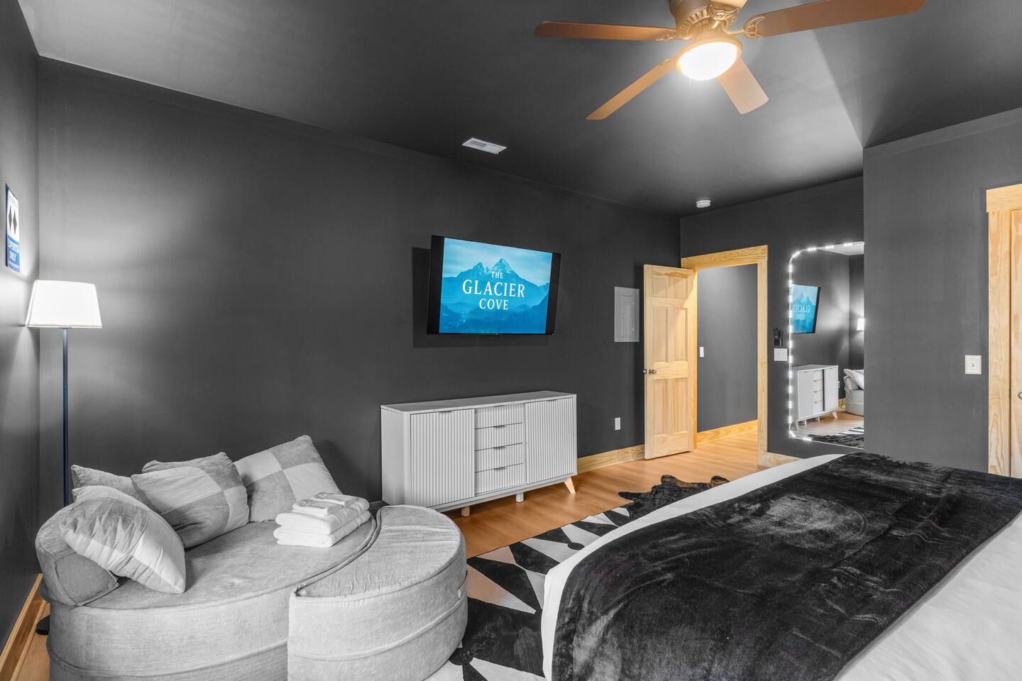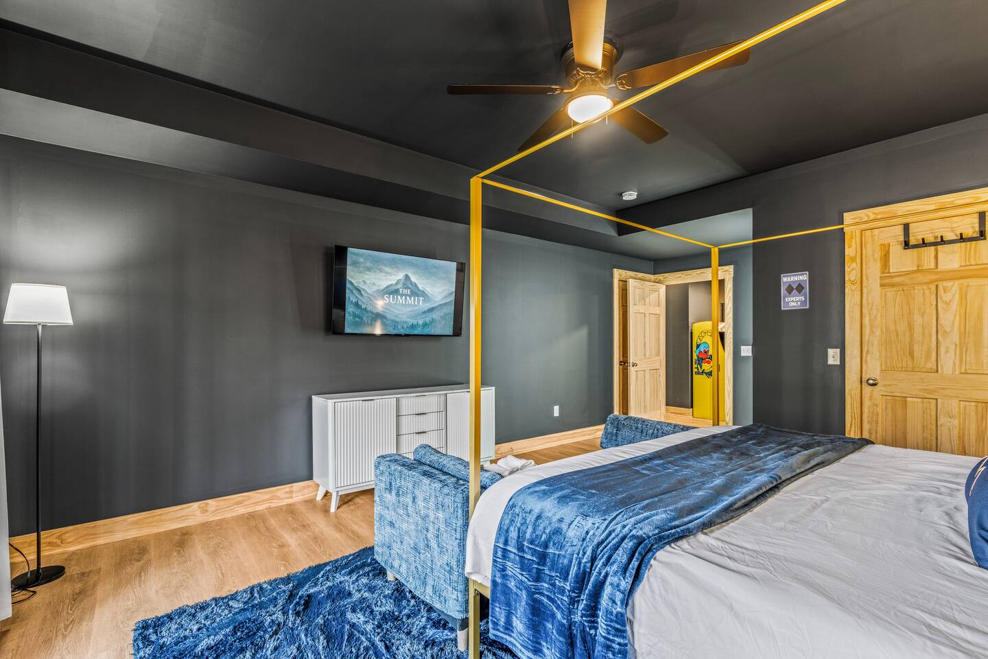 The Black Diamond Retreat is a moody-luxury mountain escape crafted for gatherings. With 7 spacious bedrooms, custom bunk spaces, and expansive living areas, it was designed with luxury in mind. Guests enjoy a hot tub, barrel sauna, arcade-style game room, EV charger, and family-friendly extras—all wrapped in bold mountain style. Just minutes from Massanutten’s slopes, waterpark, golf, and hiking, it’s the perfect place to relax, connect, and make memories